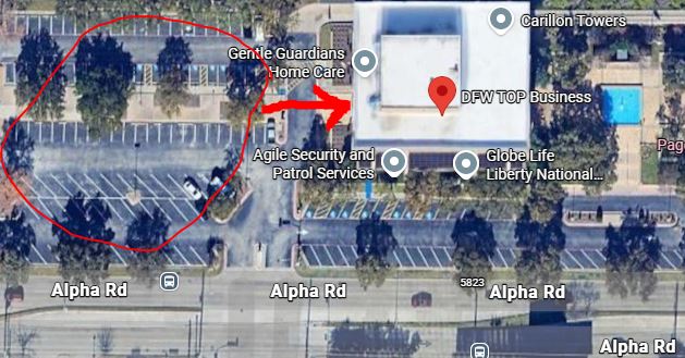 Address: 13601 Preston Rd, Dallas Tx 75240 (It’s on Alpha just West of Preston)